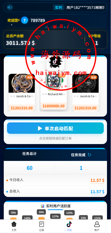 新版tiktok抢单刷单系统,前端VUE开发后端PHP全开源带教程
