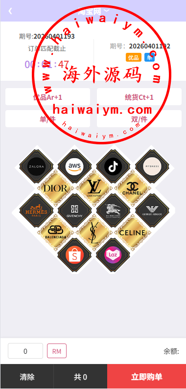 多语言海外伪商城刷单系统/CP快三/带预设/订单自动匹配