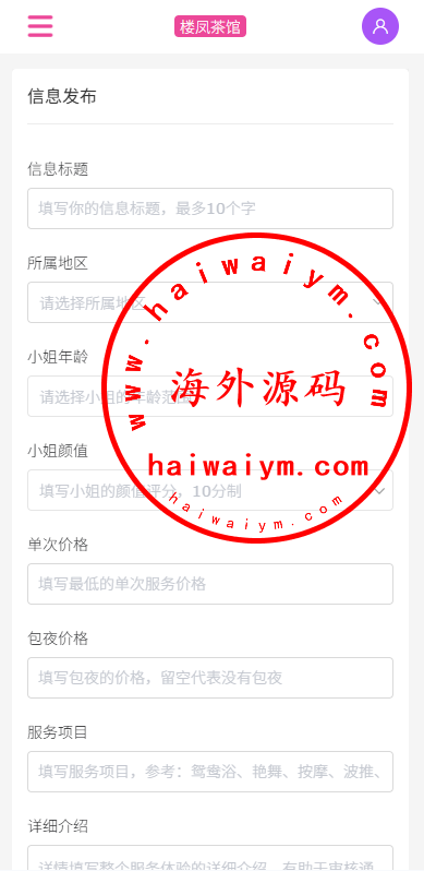 JAVA版同城楼凤系统/楼凤茶馆/信息发布/信息网