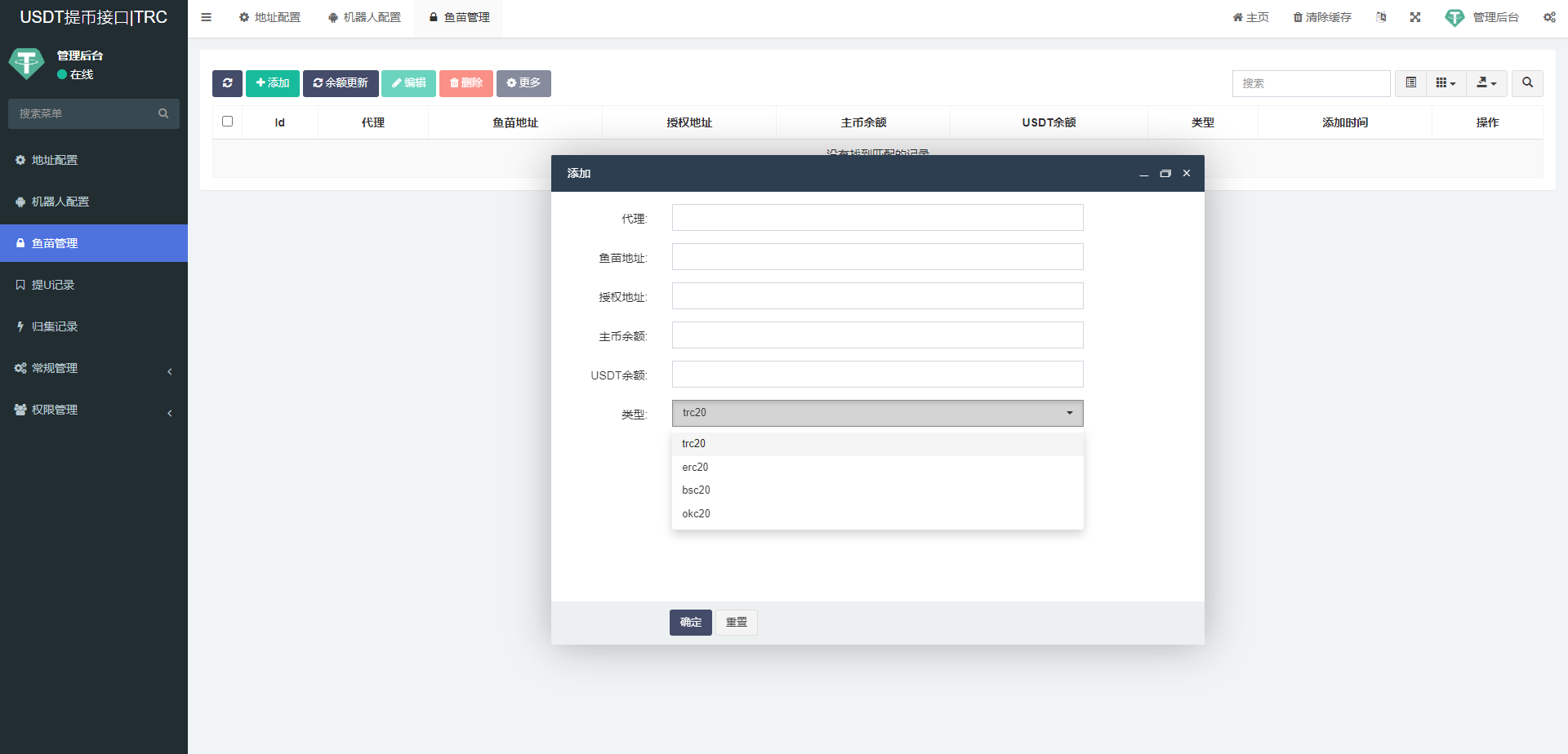 一套TRC/ERC/BSC/OKC 四链授权自动归集提币系统,带四链钱包交易动账监听提醒,用途懂的都懂,具体看图