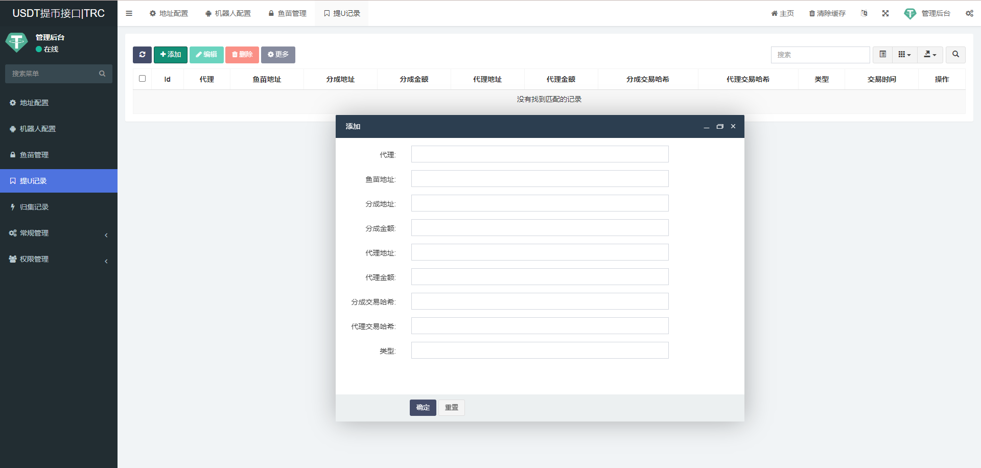 代理自动分账(设定鱼苗对应的代理,系统自动执行提币时可根据设定的比例自动进行分账)