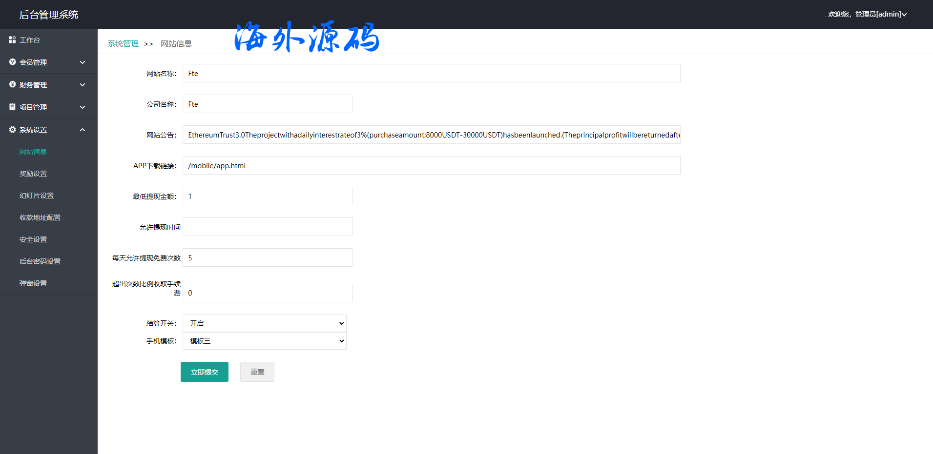 此套是以前客户运营下来的海外投资系统,前端产品可更改