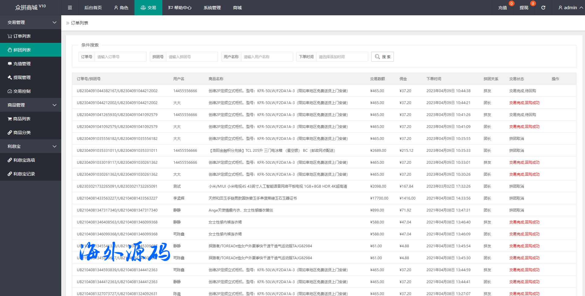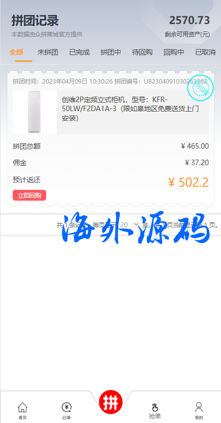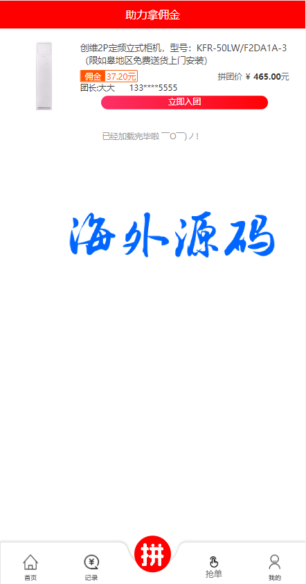 此套系统是以前别人运营的抢单和拼单集合一体的系统