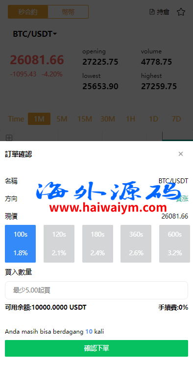 多语言虚拟币微盘/海外微交易/秒合约/时间盘