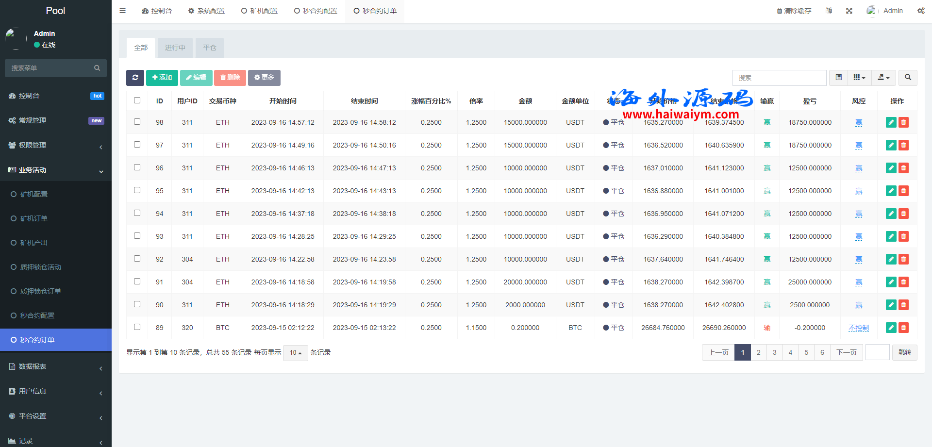 海外交易所系统/合约/期权/质押/秒合约/插针控制/申购
