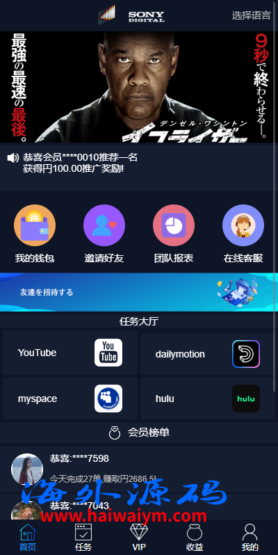 多语言海外点赞任务系统/余额宝/国际任务点赞源码