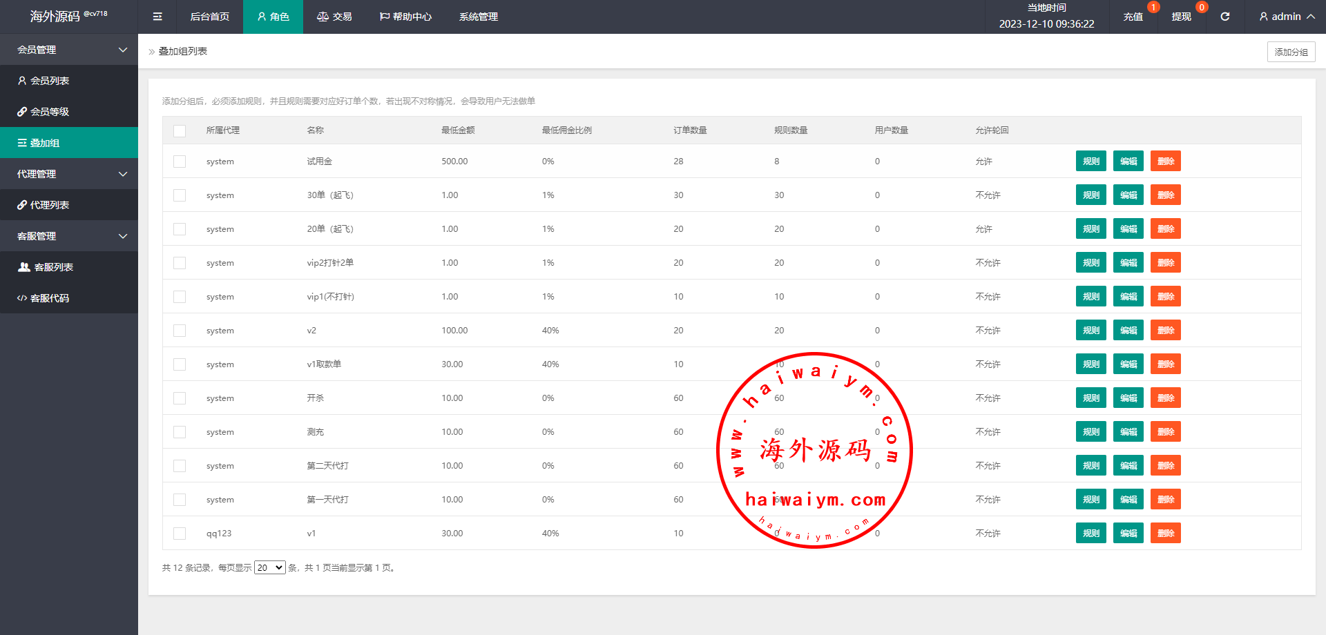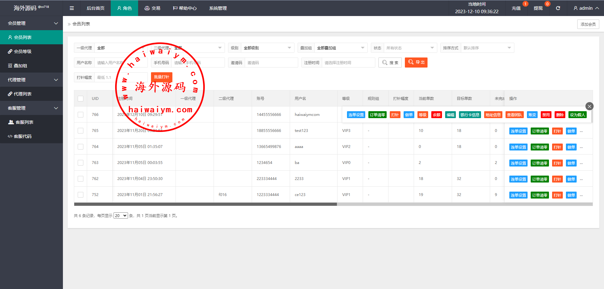 系统支持连单卡单、叠加租、打针、权限代理等功能