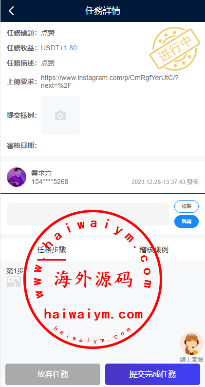 ②、领取任务,提交截图上传审核