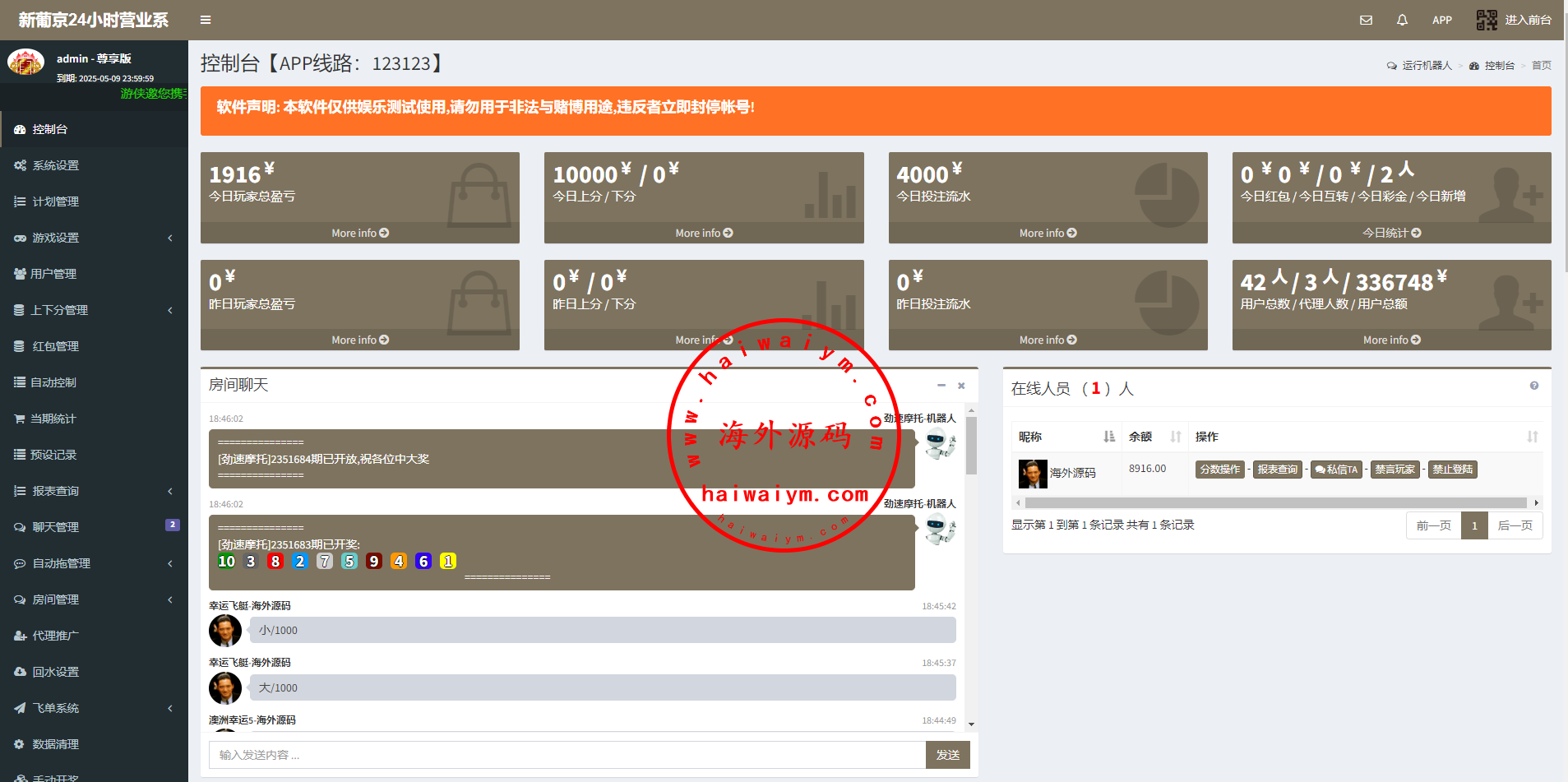 ,可无限开房,智能控制,开奖预设,手动开奖,对接第三方