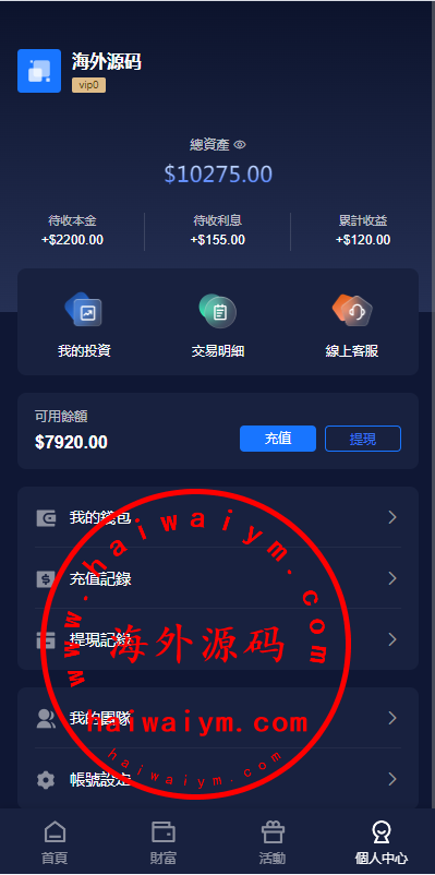 新版海外投资理财系统/多语言投资返利/IM社区/10级分销