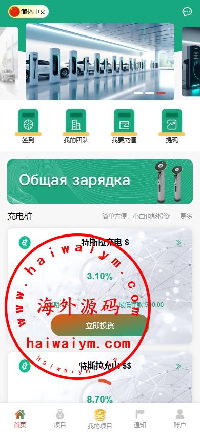 新版UI海外多语言新能源充电桩投资理财系统前端VUE开发,后端php带源码跟教程