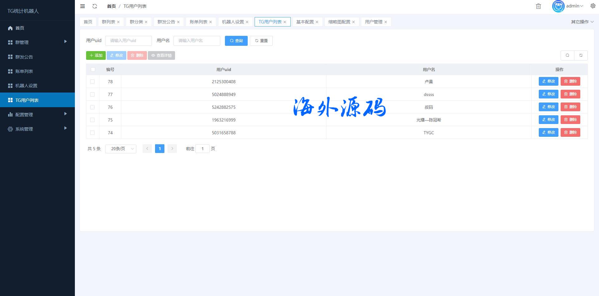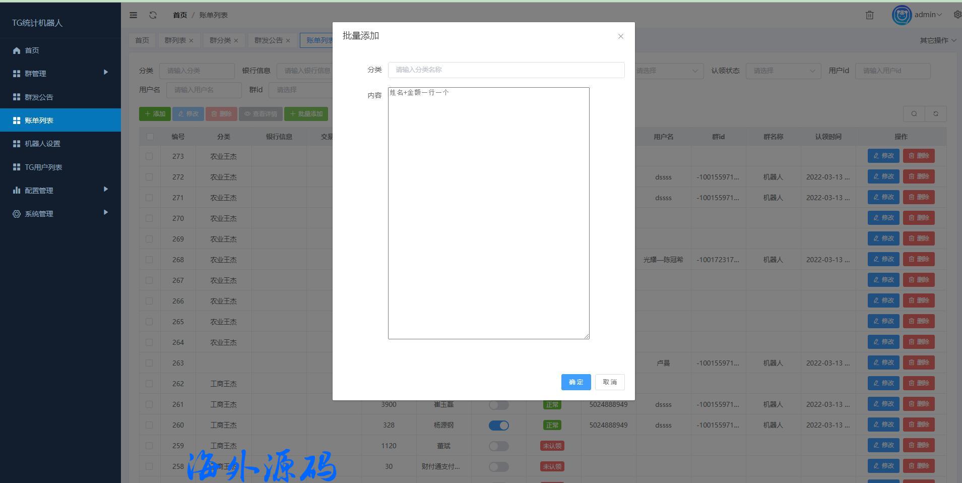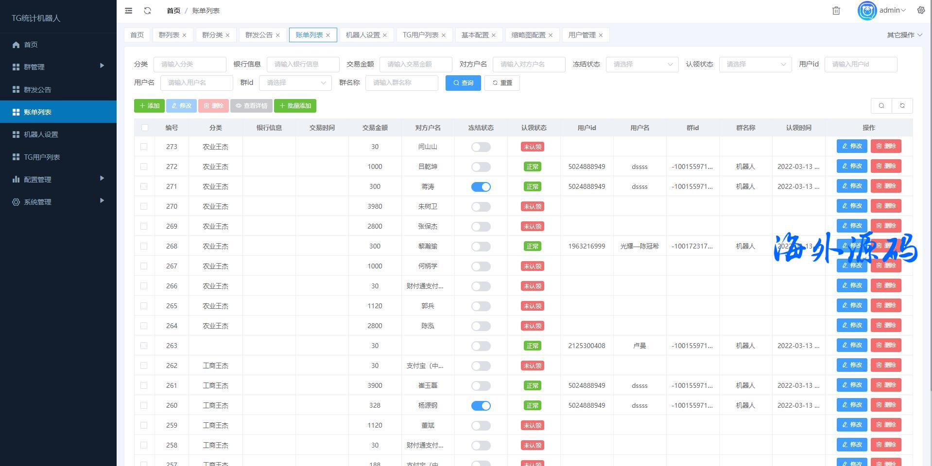 别人定制的TG统计机器人,后台功能强大 账单可后台一键导入