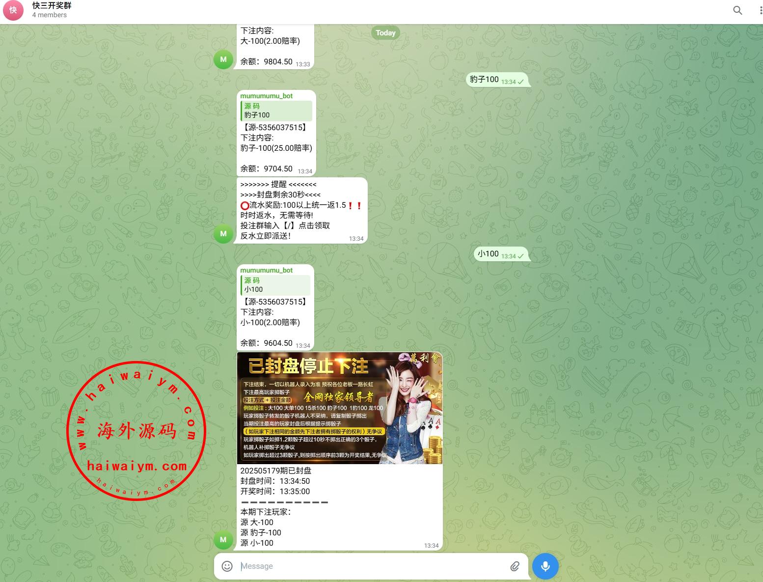 (押注口令:点数+豹子+金额)