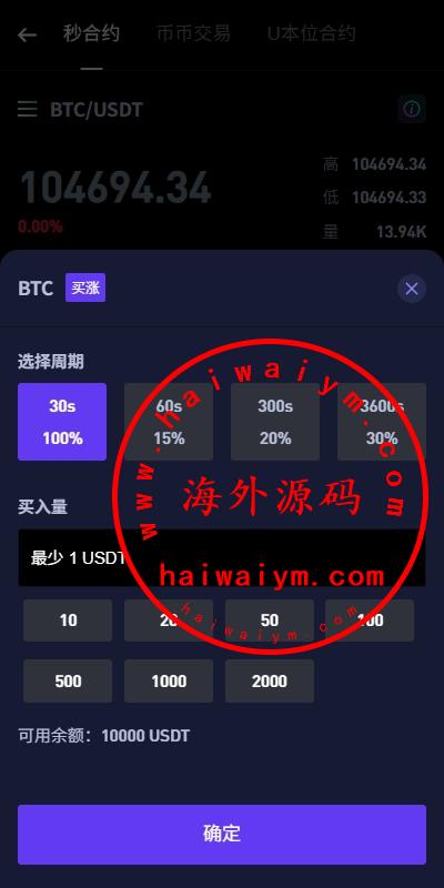 新UI海外微盘系统/虚拟币秒合约/多语言时间盘