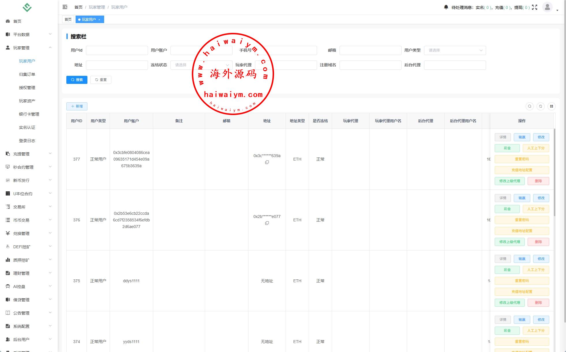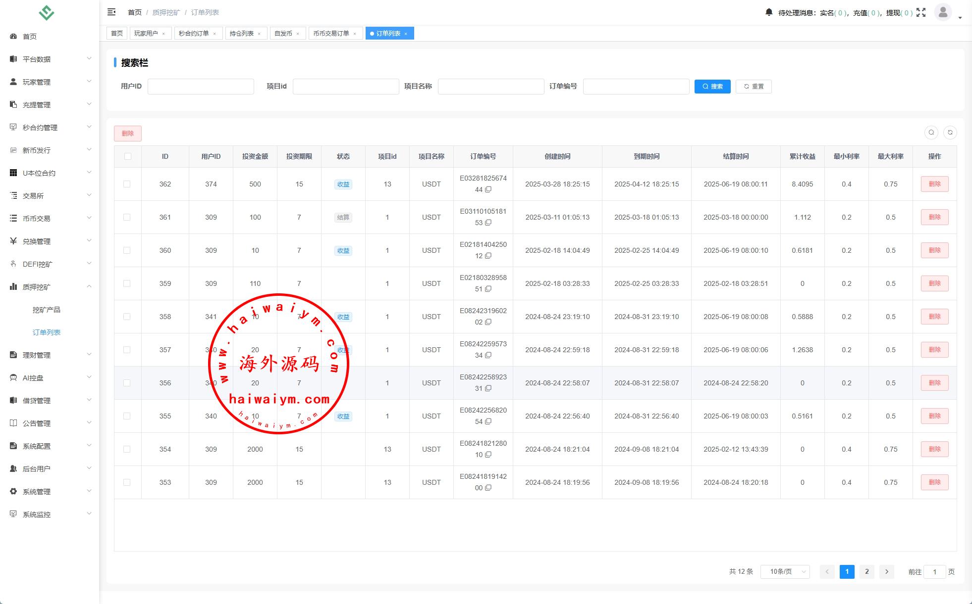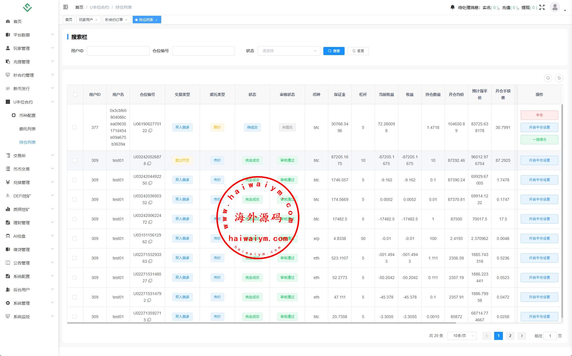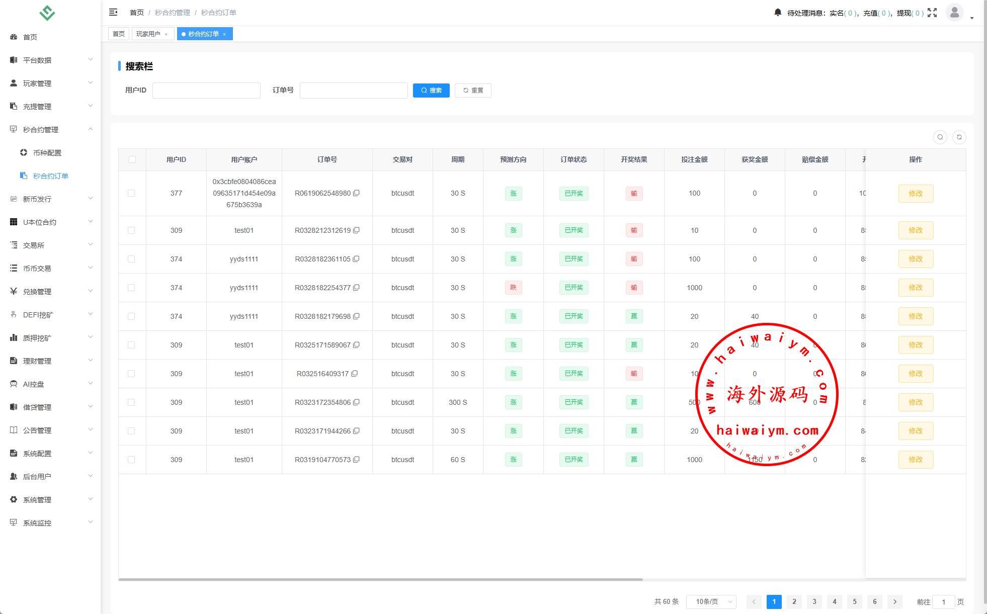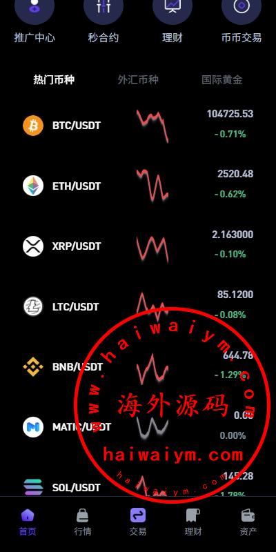 系统功能:币币、U本位合约、秒合约、质押挖矿、助力贷、理财、推广三级分销等