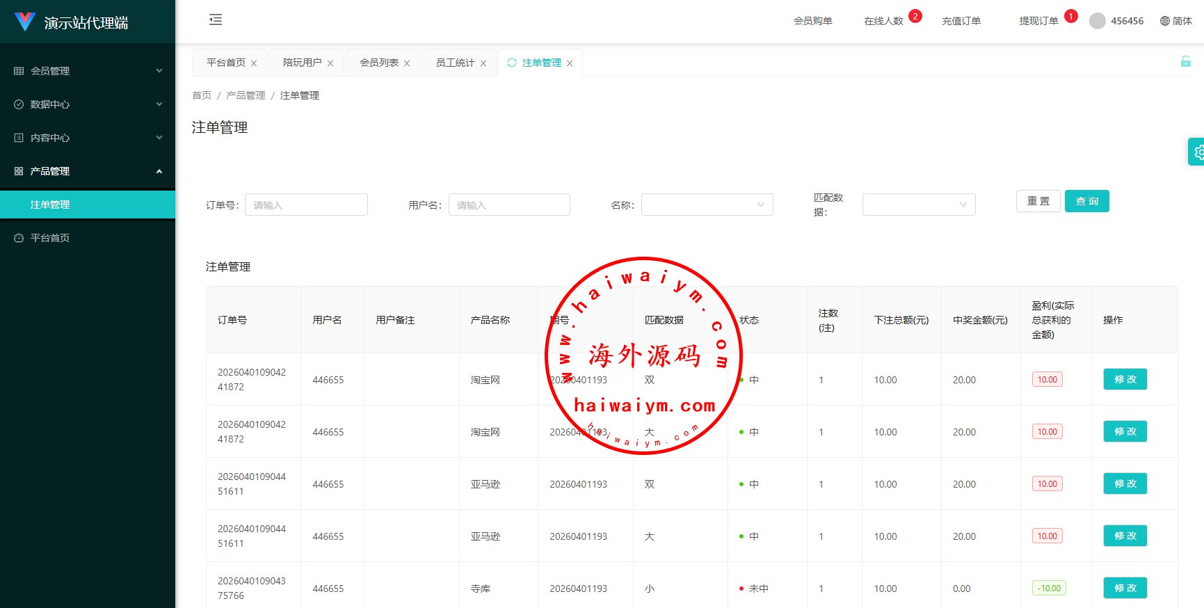 uniapp伪商城系统/CP快三游戏/订单自动匹配/带预设/代理后台