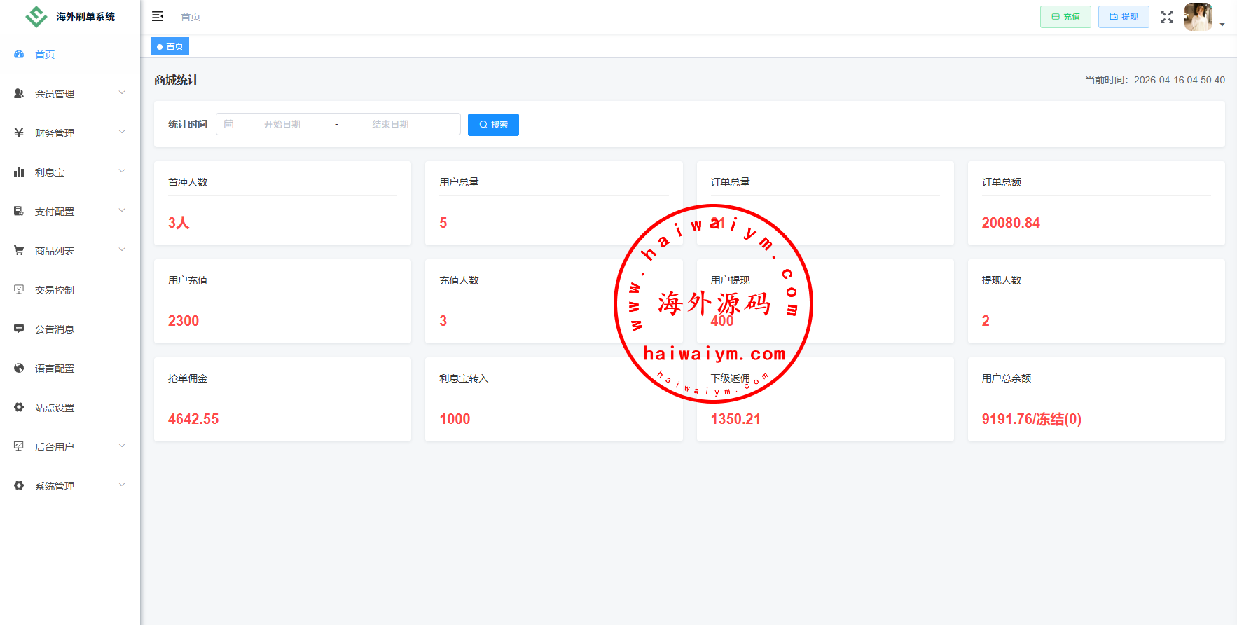 功能:金额打针,连单,信用分,重置订单,时区设置,余额宝,代理等诸多功能此套系统全开源功能可定制二开,源码不便宜嘴炮勿扰
