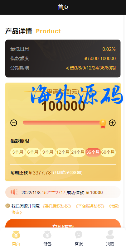 海外贷款平台/小额贷款系统/信用分/合同/提现码